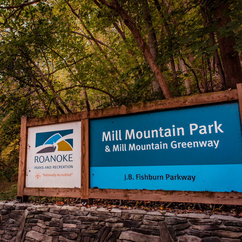 From Chestnut Ridge Trail, return to the Mill Mountain Parkway spur off the Blue Ridge Parkway. Turn right on J. B. Fishburn Parkway and follow it 1.3 miles to Mill Mountain Park on the left.